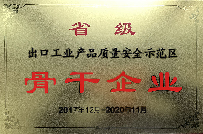 省級出口工業(yè)產(chǎn)品質(zhì)量安全示范區(qū)骨干企業(yè)